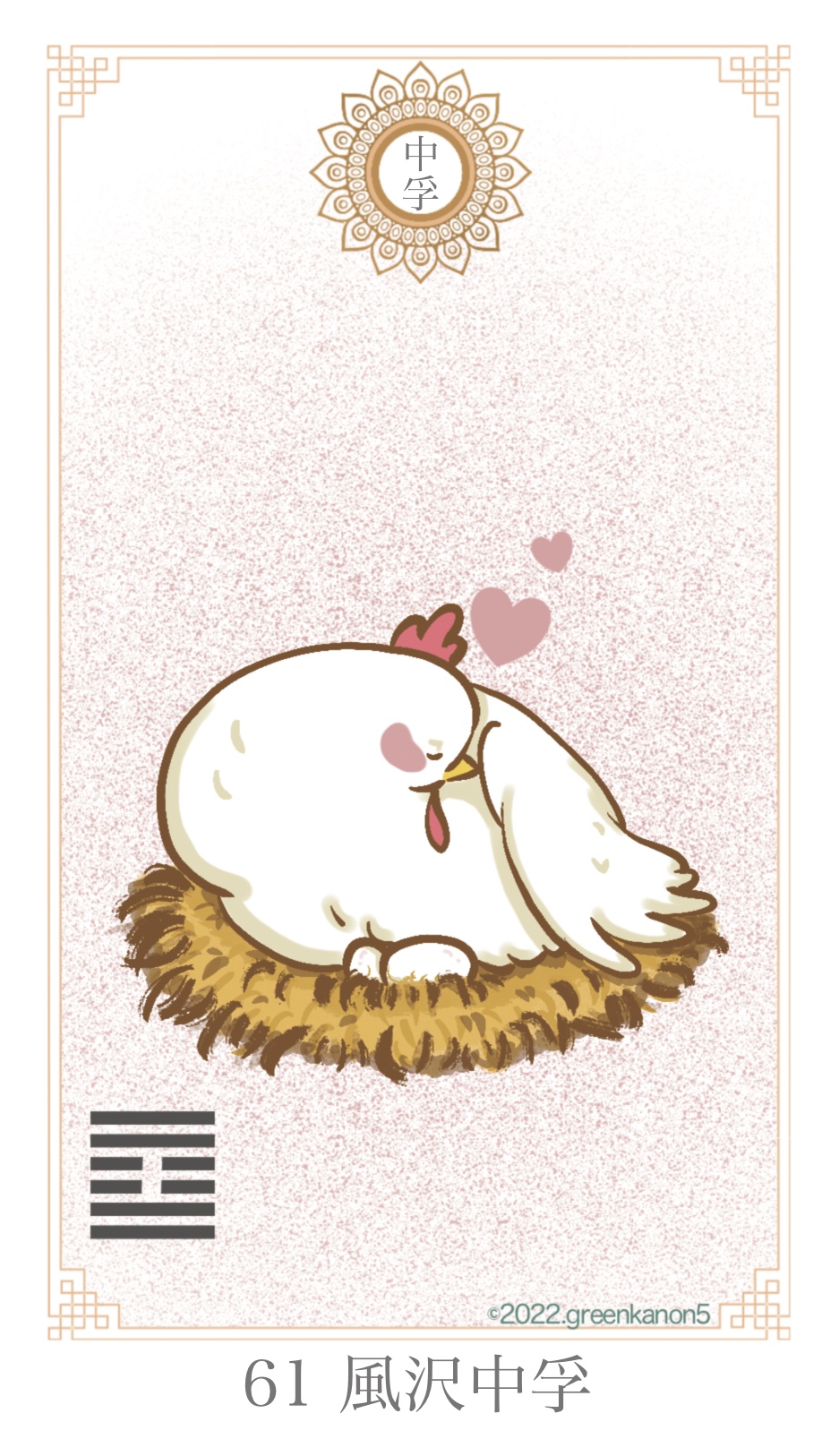 親鳥が卵を抱いている様子のイメージやクチバシで口から餌を与える慈愛に満ちた、一点の曇りも無い誠実な愛情を持って人に接していけば順調を得られると言う卦です